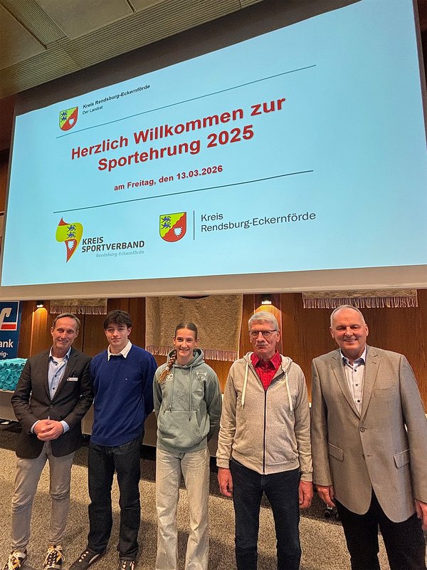 Seit rund 35 Jahren ehrt der Kreis Rendsburg-Eckernförde zusammen mit dem Kreissportverband jährlich Sportlerinnen und Sportler aus dem Kreisgebiet. Es sind Menschen, die besonders erfolgreich in ihrem Sport sind oder sich über Jahrzehnte ehrenamtlich in einem Sportverein engagieren. In diesem Jahr waren neben den gängigen Sportarten wie Fußball und Handball auch Einradfahren und Speedskating vertreten. In dieser Sportart wurde Paul Schneider vom Gettorfer Turnverein geehrt. 2025 qualifizierte sich der 18-Jährige für die Europameisterschaft in Groß-Gerau und feierte dort seinen bisher größten Erfolg: Er gewann mit der 3000-Meter-Juniorenstaffel seinen ersten Europameistertitel. Dann ging es für ihn weiter zur Weltmeisterschaft in China. Dort erreichte er Platz zehn über 500 Meter und Platz acht über 1000 Meter. Beachhandball ist die Sportart, die Nika Lemke vom Rendsburger TSV mit Leidenschaft betreibt. Sie spielte 2025 in der U17-Nationalmannschaft im Beachhandball und erreichte mit dem Team bei der Europameisterschaft in Alanya (Türkei) den 4. Platz. Außerdem hat sie bereits ihre ersten Länderspiele in der U16-Nationalmannschaft des Deutschen Handballbundes absolviert. Nika Lemke spielt mit der weiblichen Jugend C der HSG Schülp/Westerrönfeld/Rendsburg in der Regionalliga. Seit April 2025 hat sie ein Doppelspielrecht, um für den Handewitter SV in der Jugend-Bundesliga spielen zu können. Auch sie wurde geehrt. Für besonderes ehrenamtliches Engagement wurde unter anderem Burkhard Rädel von Grün-Weiß Mielkendorf ausgezeichnet. Er ist seit 50 Jahren Kassenwart im Vorstand und gehört zu den Gründungsmitgliedern des Vereins. Rechnungen bezahlen, Einzelmitgliedschaften umstellen und neue Bankverbindungen einpflegen: All das liegt in seinen Händen.