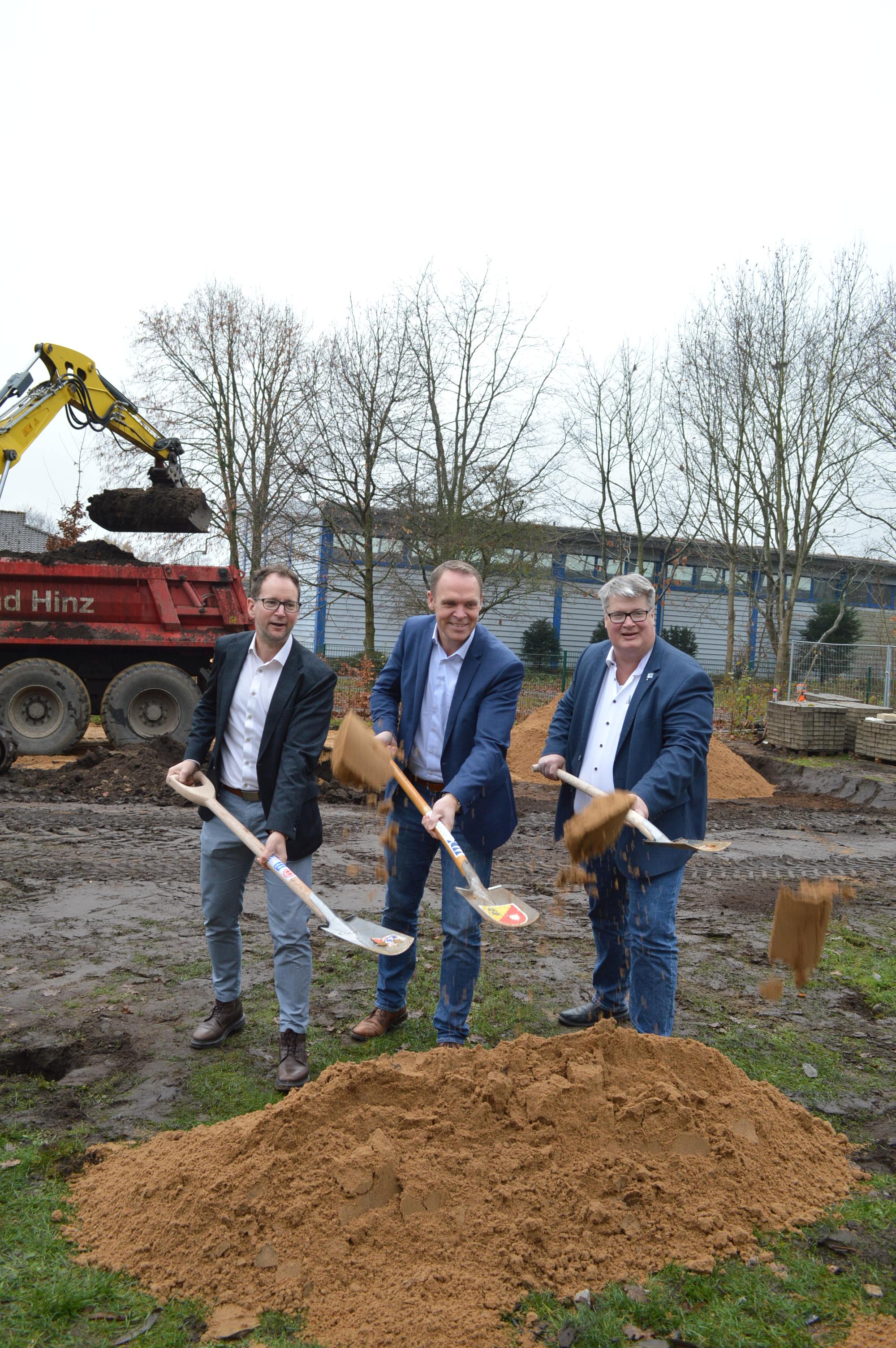 Die Bauarbeiten beginnen mit dem Spatenstich. Bis Mitte 2026 sollen drei neue Klassenräume mit zugehörigen Differenzierungsräumen sowie ein Mehrzweckraum gebaut werden. Die Klassenräume werden etwas größer als die vorhandenen, um den Bedarf der offenen Ganztagsbetreuung decken zu können. Außerdem wird die Bestandsbibliothek zum Sanitär-Kern mit barrierefreiem WC, drei Uni-Sex-Toiletten und einem Pflegeraum mit Dusche und Wickeltisch umgebaut.