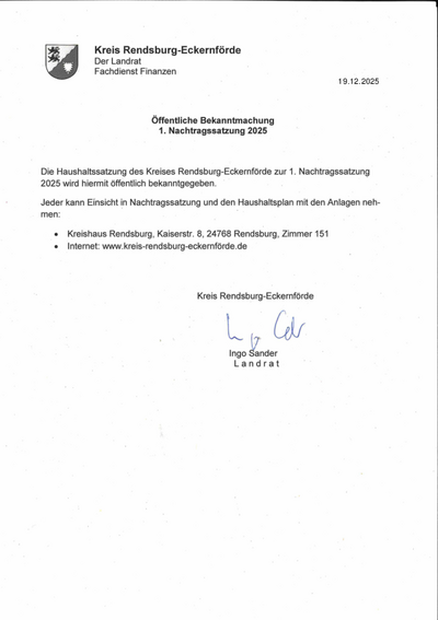 Öffentliche Bekanntmachung 1. Nachtragssatzung 2025