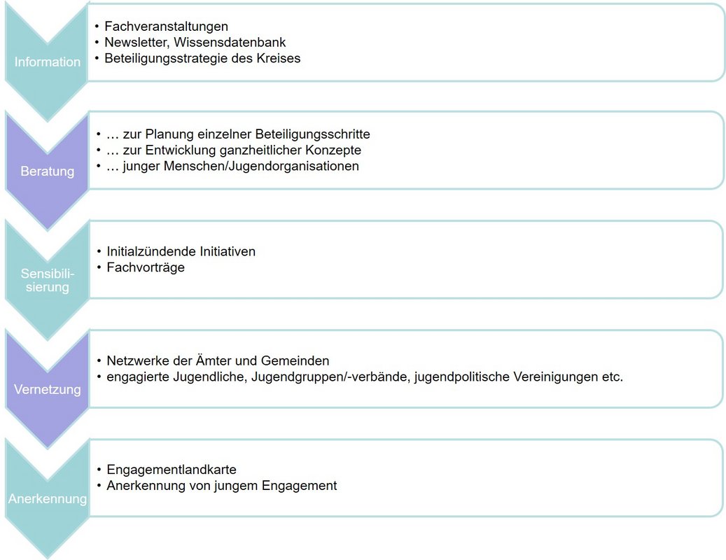 Kinder- und Jugendbeteiligung ist ein Querschnittsthema, das sich durch alle gesellschaftlichen und kommunalen Bereiche zieht sowie unterschiedlichste Zielgruppen vereint. Daher ist ein ganzheitliches Verständnis von Beteiligung notwendig. Beteiligung sollte in ein Konzept eingebettet sein, das die unterschiedlichen Beteiligungsebenen und -zugänge beachtet und sich nicht in Einzelmaßnahmen erschöpfen.