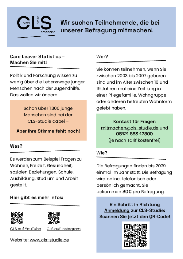 Und dazu brauchen wir euch. Wir wünschen uns, dass ihr mitmacht und mit uns teilt, was eure Meinungen und Ideen sind. Dazu wollen wir mit euch Comics zeichnen. Bringt gerne eure Pflegeeltern mit. Auch auf kleine Kinder freuen wir uns.
